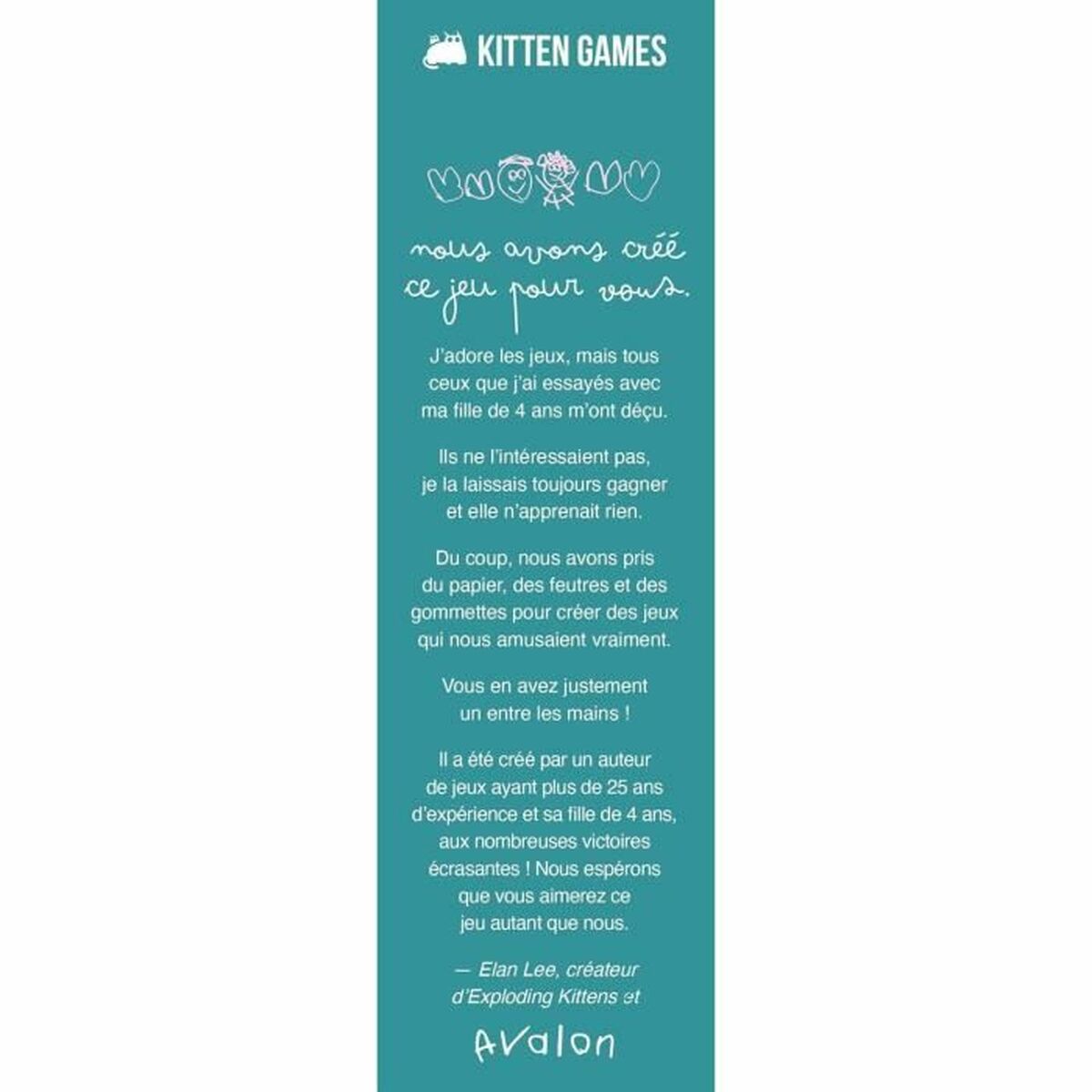 Das Brettspiel von Asmodee ist speziell für Kinder ab 4 Jahren konzipiert und bietet eine spielerische sowie lehrreiche Option für die Kleinsten im Haus. Aus robustem Karton gefertigt, gewährleistet es Langlebigkeit und Sicherheit bei häufiger Nutzung – ein wichtiger Aspekt bei Produkten für Kinder. Der Inhalt und die Anleitungen sind auf Französisch, was eine zusätzliche Möglichkeit bietet, die Sprache kennenzulernen oder zu üben, besonders für Kinder im frühen Alter. Für Kindergruppen entwickelt, ist dieses Spiel an deren Verständnis und Fähigkeiten angepasst und fördert sowohl soziale Interaktion als auch die kognitive Entwicklung im Kindesalter. Dank der Materialauswahl und einer leicht verständlichen Spielmechanik sorgt Asmodee für ein anregendes und sicheres Spielerlebnis für junge Teilnehmer. Dieses Produkt ist eine zuverlässige und pädagogisch wertvolle Wahl für Familien und Bildungseinrichtungen, die Spiele suchen, die auf die Bedürfnisse von Kindern zugeschnitten sind.